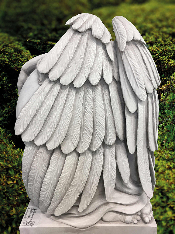 Bearbeitung: Umlauf sowie Vorder-& Rückseite des Engels vollplastisch, Herz mit Bronzeschrift, poliert
