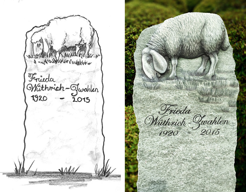 Schaf als Relief gehauen