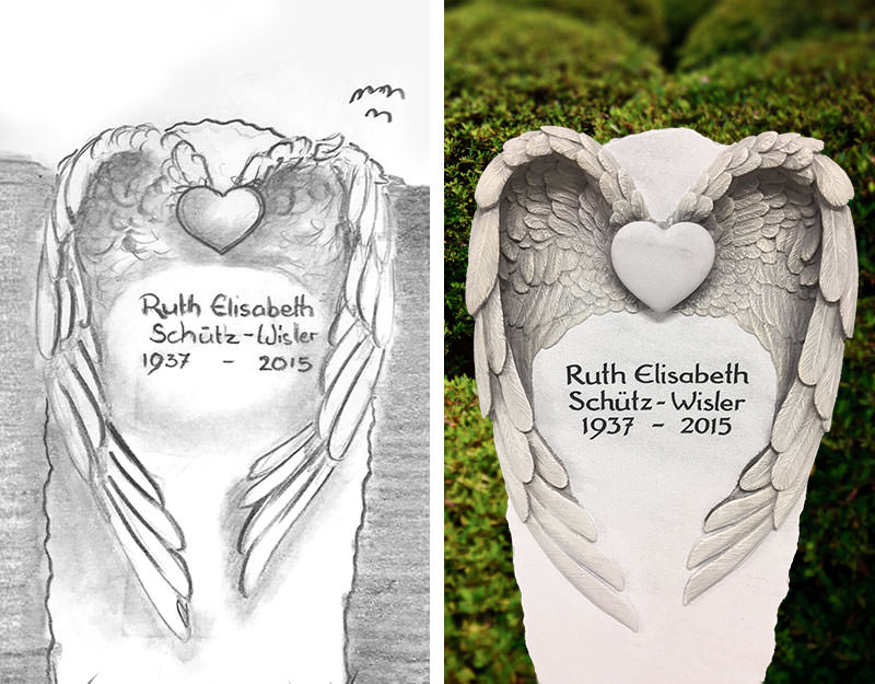 Die Flügel sind Teilplastisch gehauen worden. Das Herz wurde geschliffen und verbindet in der Mitte die Engelsflügel.