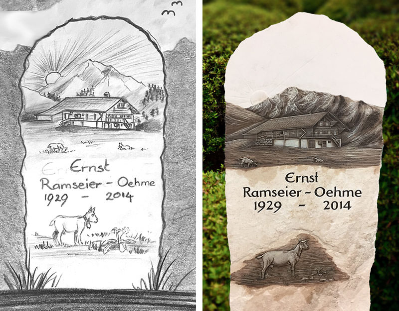 Das Relief (Bauernhaus) wurde nach Foto gehauen.